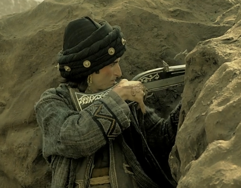 There is a 'sniper' pathan in 'Kesari', a film about the sikhs defence of a fortress in northern India in the 19c, who uses a match lock jezail.