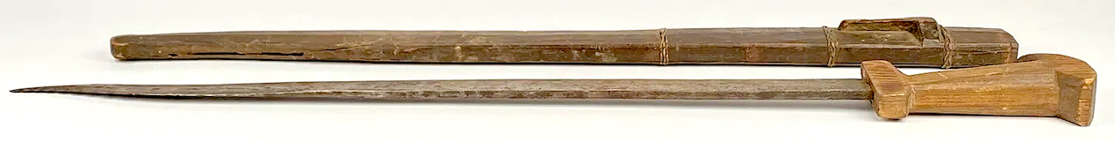 Really interesting Ian! and while it is indeed apparently a 'sword' it resembles sword bayonets of the last quarter 19th century, yet there are obviously no fixtures etc. for attachment to rifle.