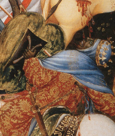 Paintings and miniatures of this period from France and England sometimes include depictions of trefoil pommels, sometimes in combination with the curved guards also seen in Spain (and the Jerpoint stone above).