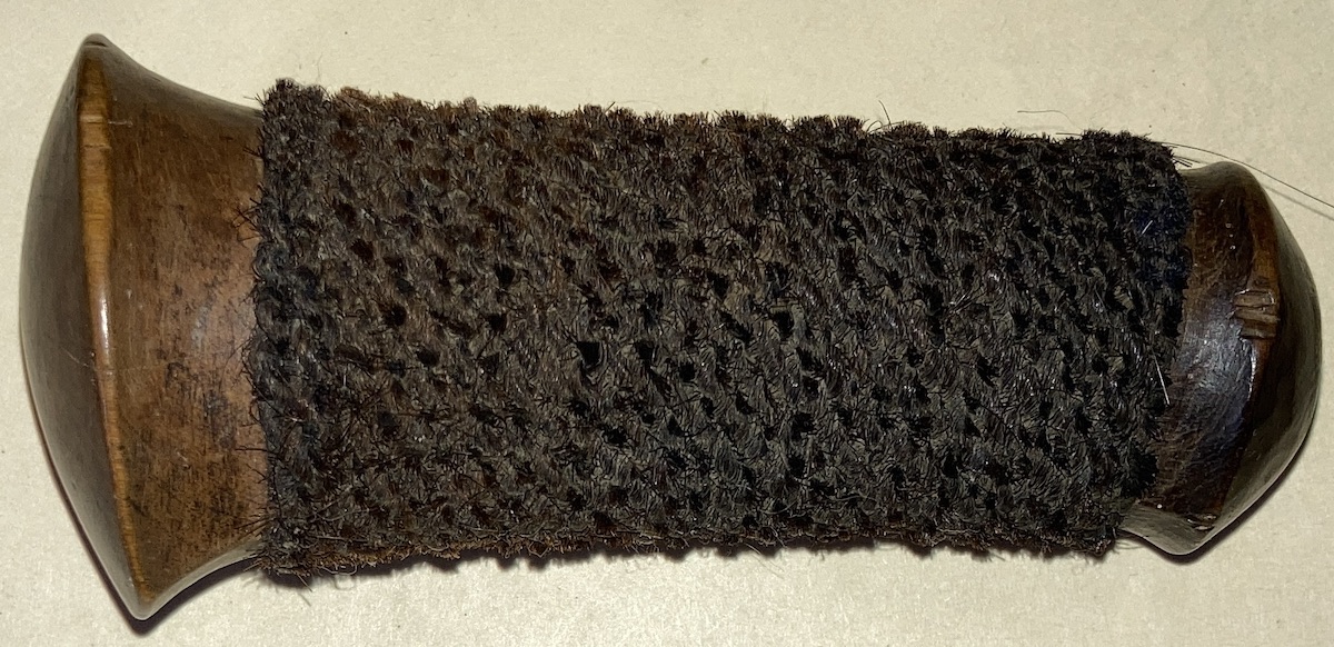 Many years ago I bought the hilt shown below on eBay. The seller called it a Balinese canegan hilt. I just perpetuated the error. As for my assumption that sampiran means boat. That was simply based on my incorrect belief that sampir meant boat. I shoulda checked. As for sampiran being the Balinese word for wranka, since Gustav wrote, “a sheath of such proportions, with a slender crosspiece, could likely be attributed to Northern Bali” and you responded, “Yes, that style of sampiran (the top cross piece of the scabbard) is usually attributed to North Bali”, I thought you were referring to the entire crosspiece (wranka) and calling it by its common Balinese name. If I understand correctly what I later found online, the word sampir (from Old Javanese meaning scarf or shawl) only refers to the sheath mouth. Does this meaning also apply to the word sampiran and, when referring to keris, do both words mean the same thing? Gustav, So, if I understand you correctly, the proper spelling would be cenangan but, since that is a fairly recent coined catchall term for related forms of simple hilts, both of my examples should more properly be called tapukan? With this post I have provided an example complete with hair covering. The wood of this hilt is one piece but the wood of the second kris I showed is in two pieces. As for that second kris, you may very well be correct about the “crosspiece and the long part” not being original to each other. The figure in the wood of the gandar and that of the wranka don’t match. Also, that large brown patch where the two parts of the sheath join appears to be some kind of wood putty. There is also evidence of extensive repair to the same area on the back side of the keris. Sincerely, RobT |