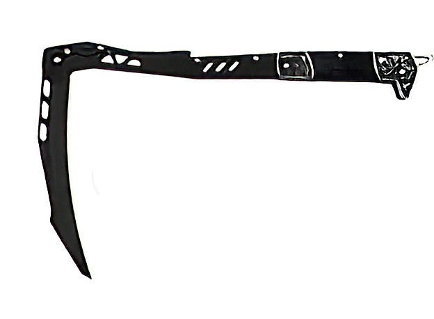 Looks like the prop dept. whittled a point on the haft of a std. pick-adze