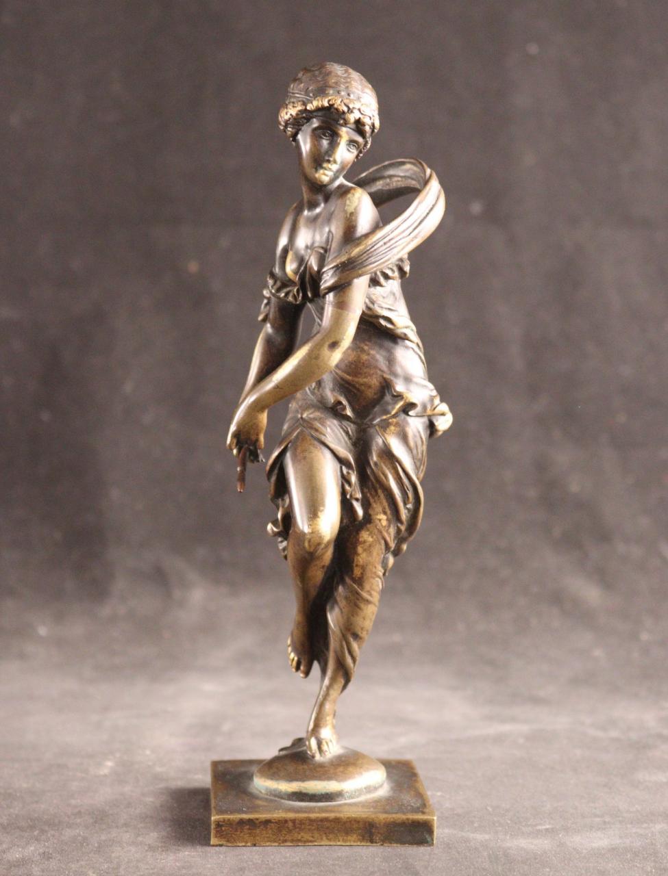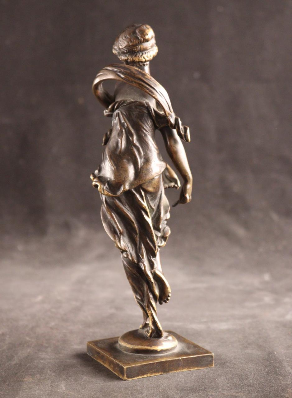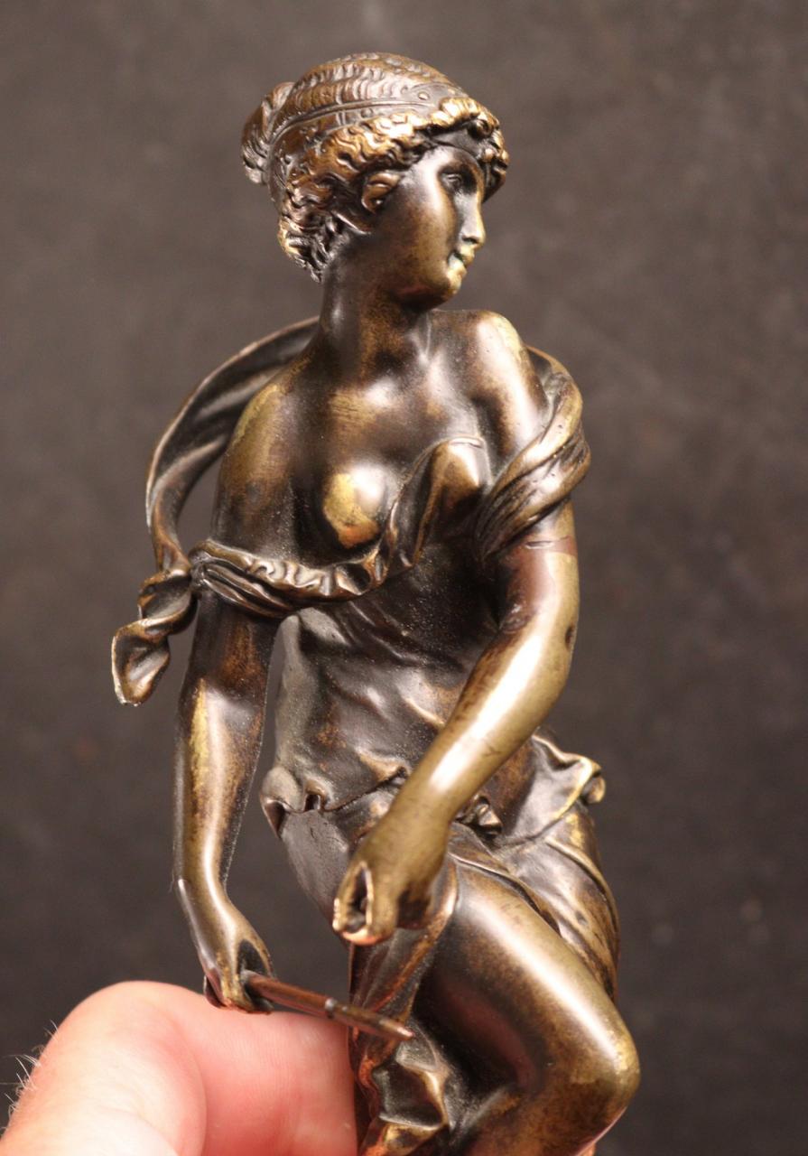 a very nice bronze sculpture of a half naked lady from the classical antiquity preparing to lash out with a dagger.