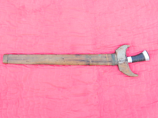 In my possession is what appears to me to be a Moro Kris ( simply a guess) that my father who served in the pacific until the end of WWII brought back with other artifacts.