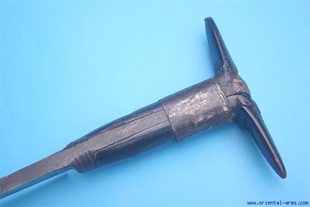 Do early Central Asian sabres have integral tunkou (to use the Chinese name; the collar at the base of the blade, like the Japanese habaki)? I know later ones are usually separate, and not attached (just tightly fitted), but some of the early ones look like they might be integral (or welded on). (IIRC, I've seen west Asian bronze swords with integral bolsters. Can't think of European examples. Easy to do with bronze, since you're casting instead of forging.) |