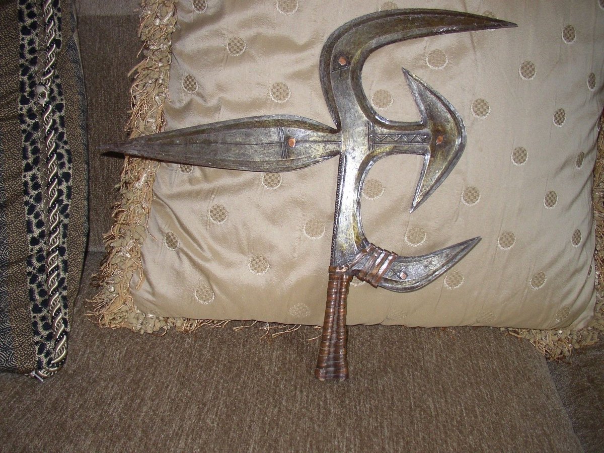 The production of this type of knife began around 1900 to 1960, after the 2WW the quality is lower. The X on the blade is the symbol of the spider a totemic animal for the Ngbaka Mabo. Some other exemples... |