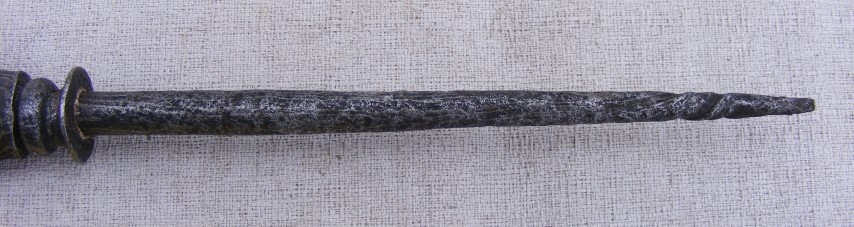 Thank you very much for your thoughts on this spear head and especially for the tips on the correct way of cleaning and preserving this piece. I have added two more photos, one showing the twisted end of the tang and the other showing the methuk (the round thingy at the base). These were the best that I could produce from the auction photos using the photo editor I have. I have always wanted one of these for my collection even though they are not Philippine in origin, (as the other 99% of it is) but every one that I found that I liked was always more than my limited funding would allow. Even though I have read about everything I could find on them here on the forum I still had no idea of how to tell an original from a tourist item, that is unless it was so poorly made that it was quite obvious it was never meant to be used for much more than a paperweight. I had seen this one listed and on a whim decided to use the "Best Offer" option and made a bid of 33% of the asking price wholly expecting the seller to either make a counter offer of a higher price or just ignore my offer completely. To my total amazement I instead received an invoice for payment. Apparently this piece was meant to be mine all along. Thank you again and I will contact Alan as you have suggested.Best, Robert |
