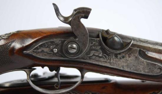 Mmmmm ....... In any case ... dubious attribution. The percussion system seems to be original, not a flint conversion, and in that case, the French pistols have an oval as an end of the hilt, following the designs of the time of the first empire. In addition, hunting scenes are not usual during this period in France, except for shotguns and hunting rifles. In all cases, the trigger closure and the shape of the butt cap seem to be mimics of a previous design. A hug |