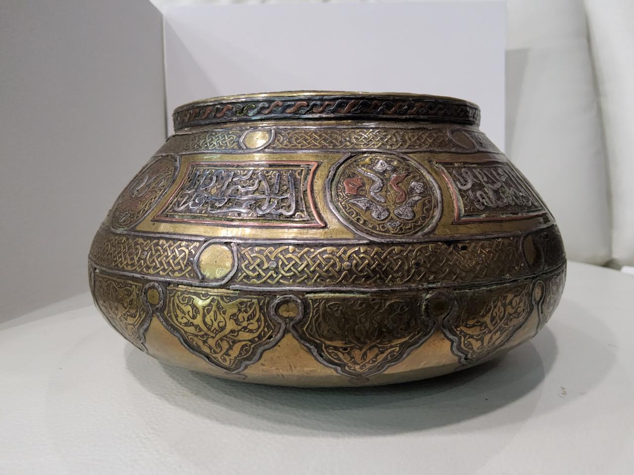 It is very interesting to know what this item was used for (I have information that this is an incense bowl, but I'm not sure about it). There are six inscriptions on this bowl, maybe someone can translate them? I would really appreciate it. Perhaps, from the ornament or style of writing, someone can find out something about the place of origin of this item? I really like this bowl and would like to know more about it. Thanks for the help |