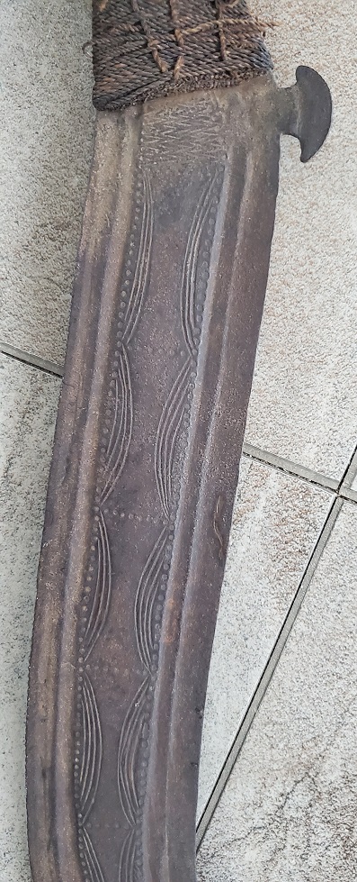 Thus, it would be really interesting in my opinion to share the sickle swords in our collections, sources about them and generally have a discussion about them. I will start rolling the ball by presenting my Ngombe/Ngbandi béro. It is relatively nimble, but still has authority in the striking head. I'm in love with this piece. Also, it is almost identical in proportions and how it is decorated to the second one, taken from this link: https://ertribal.com/index.php/triba...o-sickle-blade I like to think that both come from the same "workshop" or at least produced by closely related smiths, in both a geographical and/or cultural way. No hard proof to demonstrate it, but taking into account the huge variety seen even only amongst béro, the resemblance is striking. Last edited by Changdao; 24th October 2023 at 07:31 PM. |