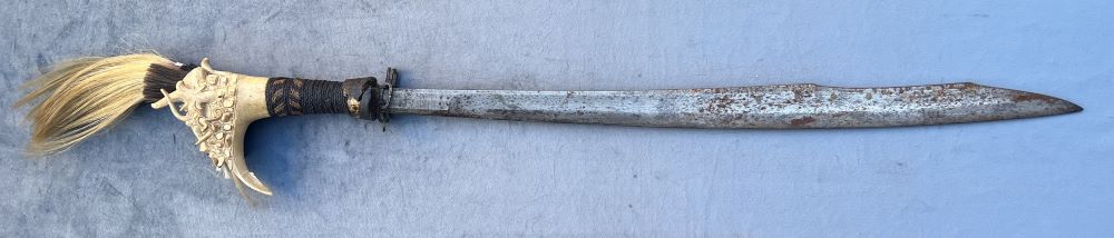 Total length – 710 mm, blade length – 545 mm, blade thickness at the handle – 9 mm, weight – 672 g Any information or comments regarding age, type, tribe, etc. would be appreciated. Thanks. Regards, Yuri |