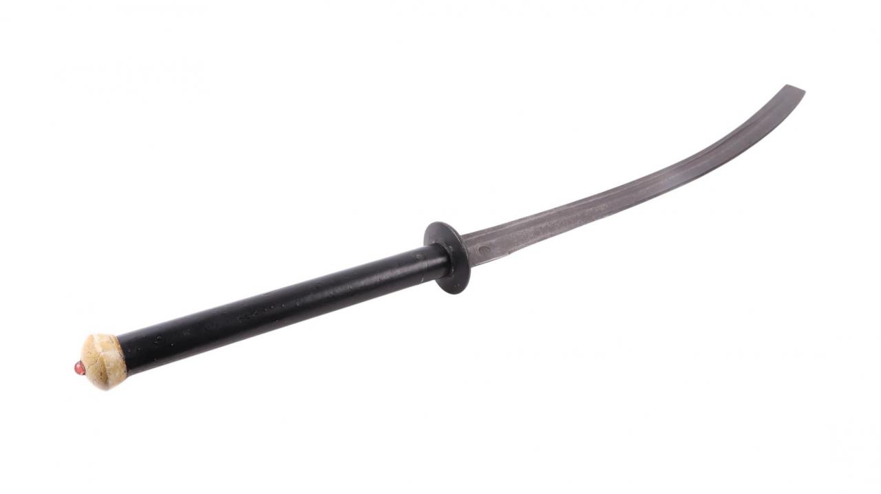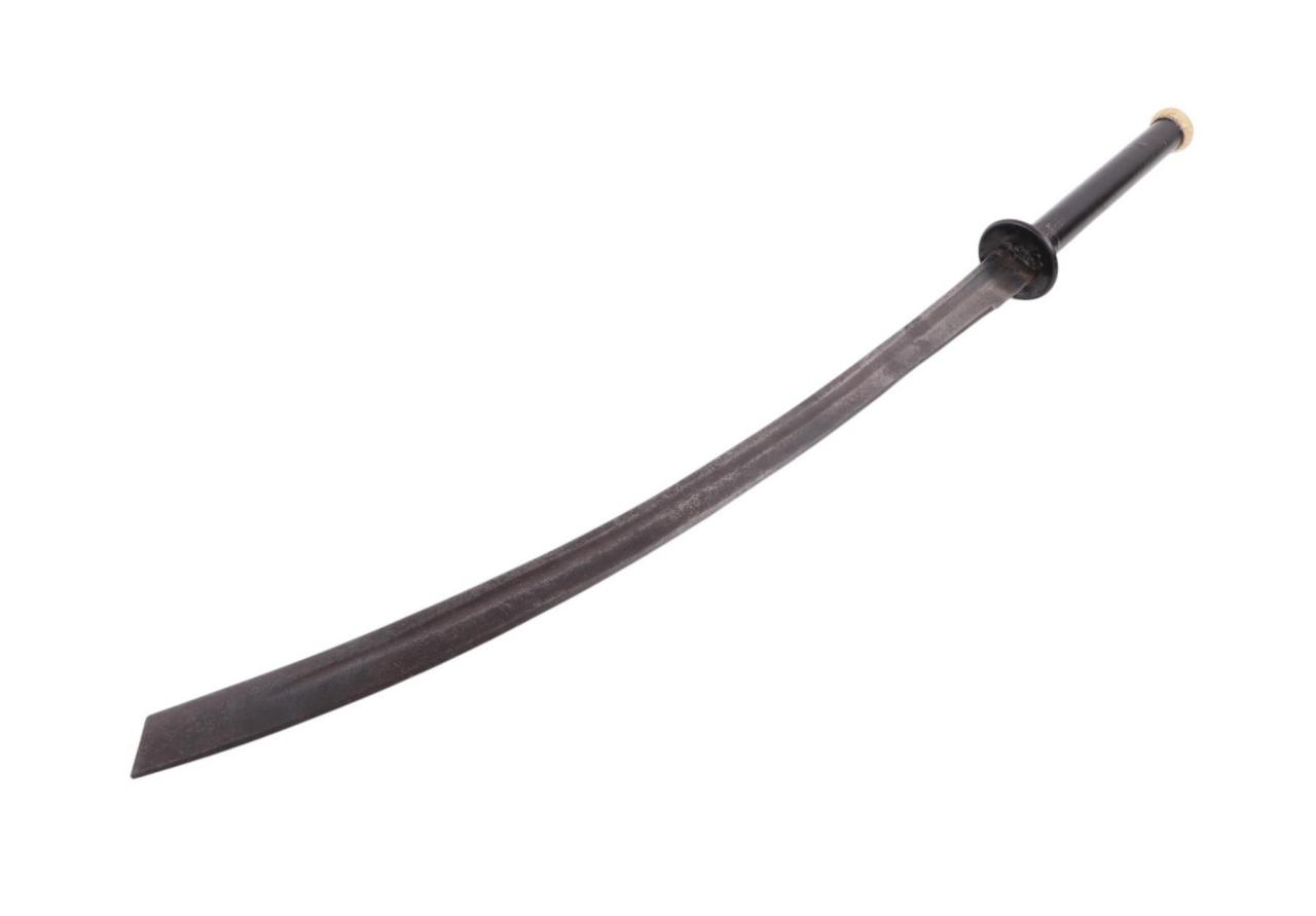With respect to the hilt, I find it a little surprising that a smooth cylinder of turned wood has been used for the grip. This is not very practical because when such a grip is wet (as from blood or water) it becomes slippery and hard to hold. For this reason hilt surfaces are textured or wrapped in materials that give a firmer grip when wet. Also, a circular grip is the least stable in the hand and likely to twist while being used. Lastly is the small, nondescript pommel of ivory or bone, attached with a pin, that offers no clue to its ethnic origin. To me the hilt has some SE Asian/southern Chinese familiarity but I suspect its assembly had European influence also.
