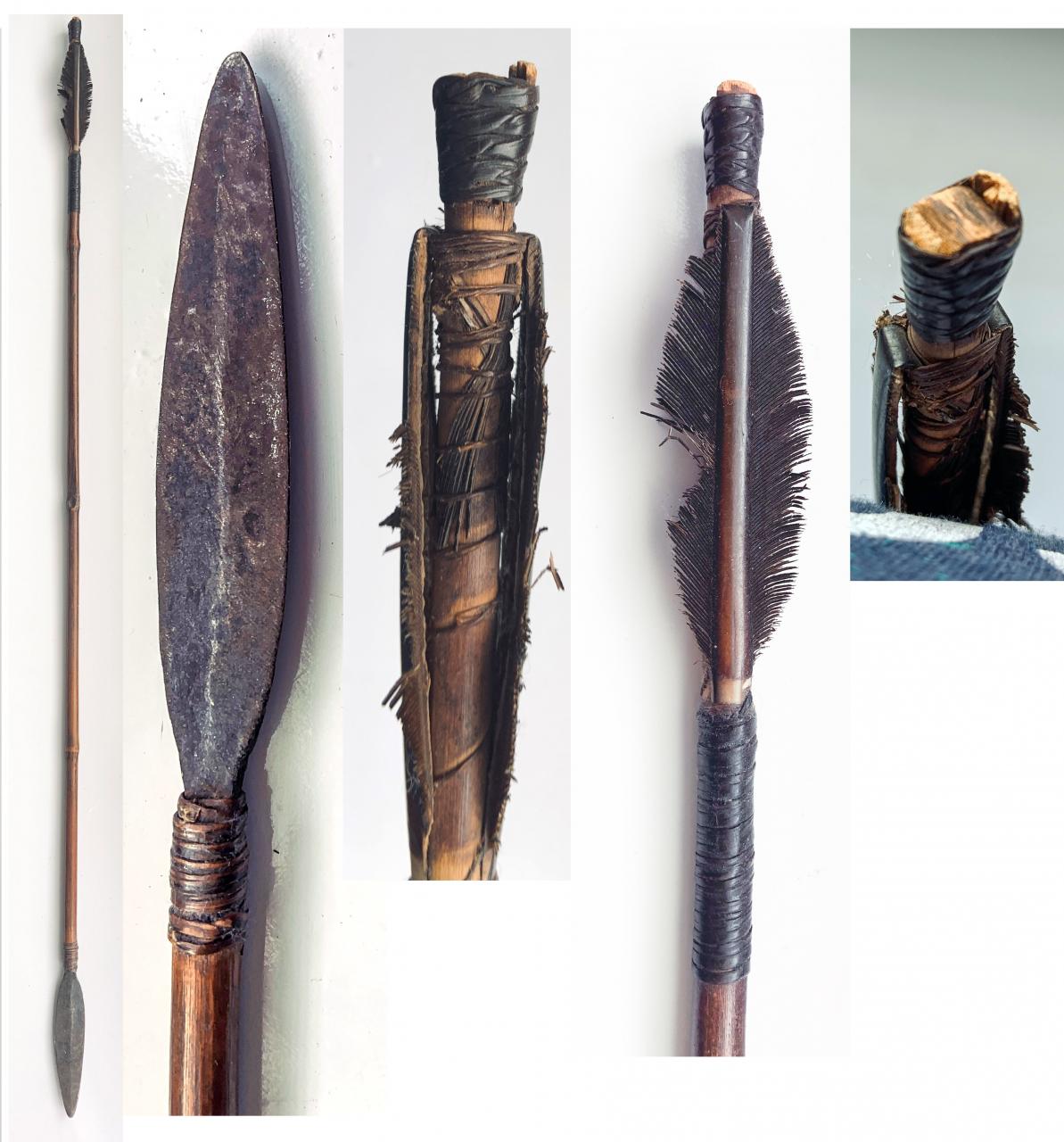 This arrow was among my grandfather's things. I'm looking for identification or advice on who might help to identify it. It's 27 inches (66 cm) long and appears to have been painted after assembly. |