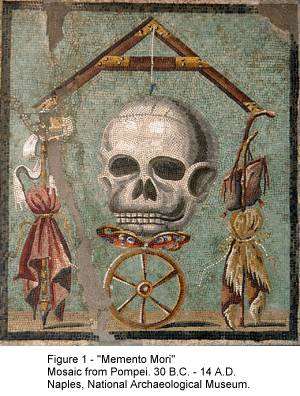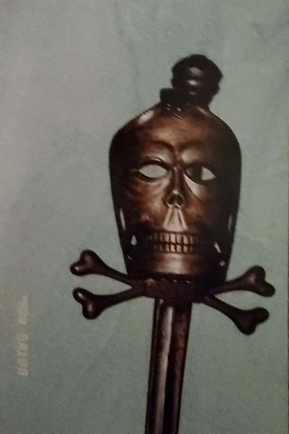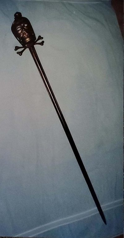 It is an unusually hilted sword with sheet alloy skull and crossbones mounted on a vintage Napoleonic French cuirassiers sword blade, the inspection poincons visible as I recall. Obviously a one off creation, and knowing that the skull and crossbones was often seen in Masonic regalia as an element of the symbolism in the dogma of these fraternal groups in the Masonic orders. The symbolic presence of the skull and crossbones applies to the Latin motto 'memento mori' , literally remember that you too will eventually die. While obviously morose, there are many philosophical interpretations which are more inspiring than macabre despite the grim visual depiction. While I thought perhaps this might have been a Tylers sword, the traditional sword of the Tyler, who guarded the secret proceedings of the Lodge as they meet. While these swords appear to have been of many forms chosen by the various lodges, often venerated old swords from veterans and earlier campaigns and trophies, in the literature, they are typically of the 'flammard' type. These were the knightly swords with undulating (flaming) blades as the sword that guarded the gates of Eden in the Bible. In 2008, I met Joseph Marino and James Kaplan, who that year had written the seminal work cataloging the swords of Freemasonry, " The American Fraternal Sword". As they signed my book, we all laughed as I quipped, 'cant wait for the movie!!' (bad dad joke). That reference opened new vistas in the collectability of these 'Masonic' swords, which always lurked in antique stores, tagged with hubris laden descriptions, but ever passed over as non interesting faux swords in dusty cabinets. Now new fields of collecting have opened seeing these as interesting regalia with historic value. In further research, I found that the skull and crossbones was prevalent in many cases as elements in the hilts of certain rank rather than assigned to certain chapters or groups in the Masonic context. However, it seems that the designs did in degree apply to the Order of Malta as well as the Order of the Temple, with certain emphasis regarding the material concerning Hiram and rebirth etc. Specifically, the MEMENTO MORI. In Masonic dogma, it is based on ancient principles, beliefs, axioms extending into Hermeticism and early philosophies, and this includes the sanctity of Masonic doctrines. (pictured a mosaic from ancient Pompeii, featuring the compass, skull and plumb line). The plumb line to the skull represents death as the great leveler. It is these kinds of deep symbolism which exist throughout Masonic lore and dogma,. It is believed that the symbolism of the Memento Mori began probably in the New York Masonic orders in the late 19th century, establishing a probable terminus post quem for this example. It is of course likely an old French sword provided the blade for this unusual niche sword, and likely a select item perhaps for display or wear during ritual processes during meetings in some lodge of years ago. The sword with black backdrop is one of the more traditionally seen examples mentioned...the example discussed is an entire anomaly. While I would very much enjoy seeing comments and especially examples from others out there, I realize the odds. Still, I wrote this to share my findings, and at best......readers enjoy!!!!