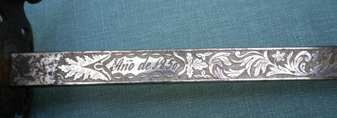 It is a British Engineer Officer hilt devoid of gilding, with a Spanish Cavalry Officer blade, dated Toledo 1850. Thinking that the match happened in the XIXth century, what was it, a British Officer wanting a Toledo blade or a Spanish Officer wishing to use a steel guard? |