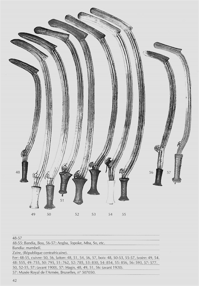 As RobT has noted, and Ian has wonderfully detailed and furnished that outstanding reference, these interesting swords are from the Azande people in NE regions of Congo bordering S. Sudan.