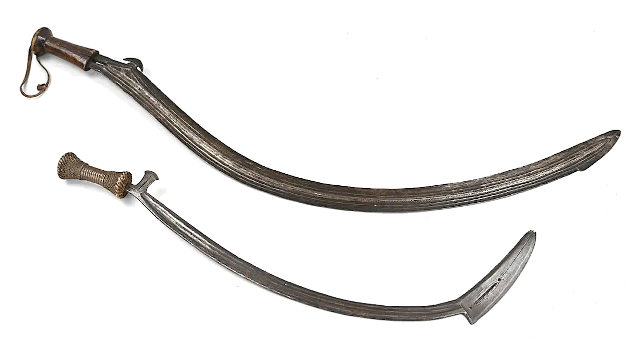 As for their use, they were obviously melee only implements. They are not only not suited for throwing, but coexisted in the same societies with actual throwing knives intended for such a use. 19th century sources clearly state that both (sickle swords and throwing knives) were distinct implements.