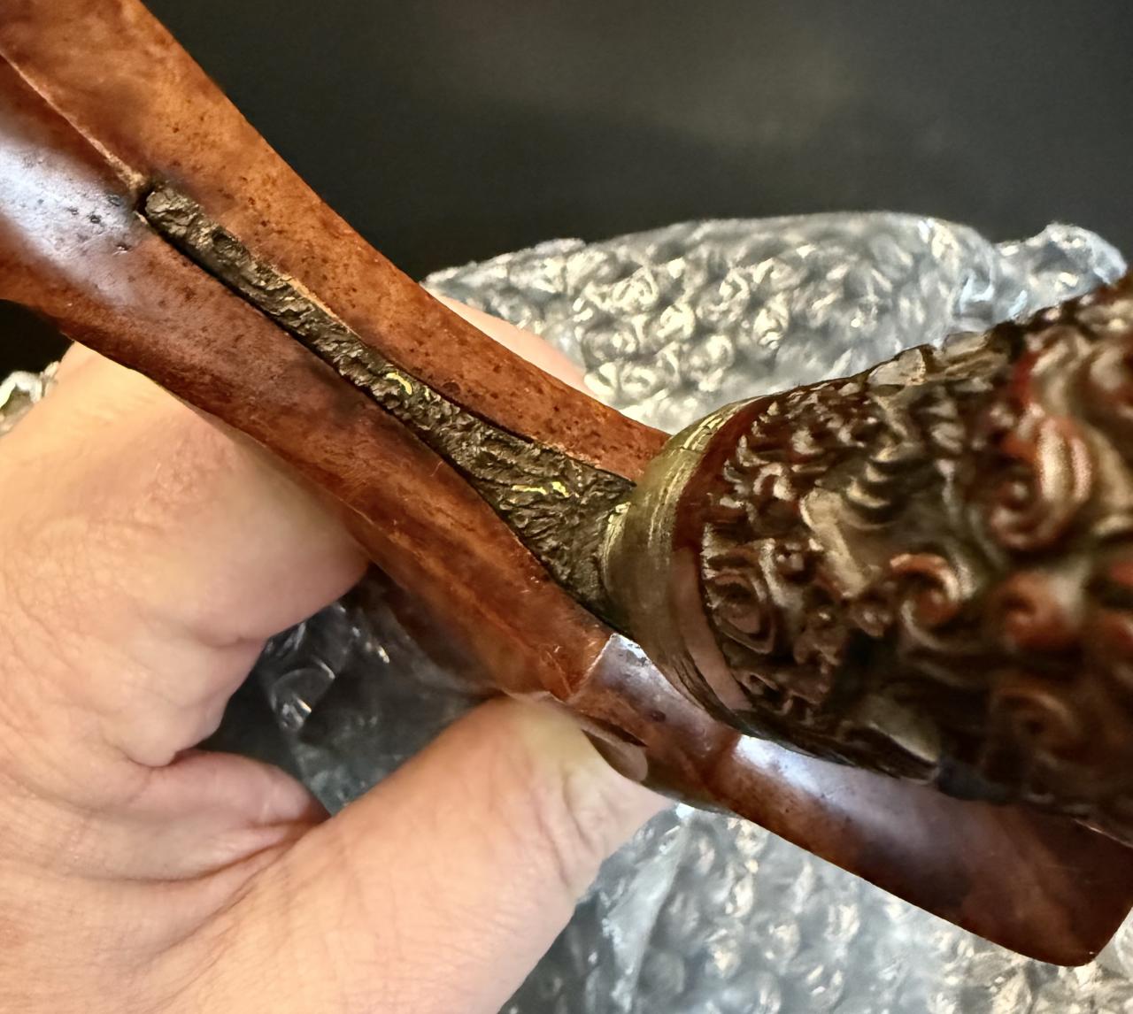 So I am in the train back home after picking up the Keris. And could not resist to share two pictures of the fitting of the Keris and the last remains of the Kinatah.