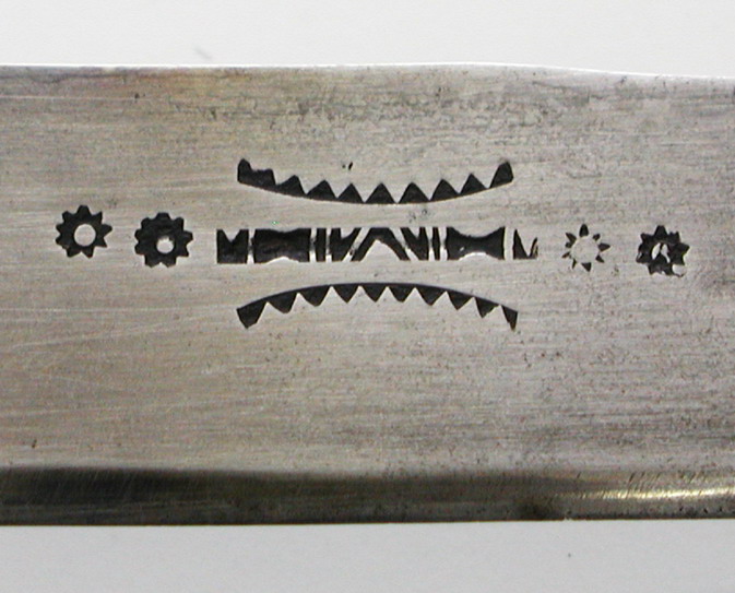 The deep stamp close to the langet says 'Ibrahim', and at the back of the blade is another inscription. Do you know this one? |