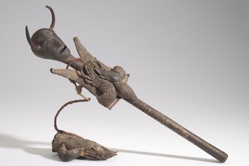 the example you have shown looks to be sudanese....similarly made daggers are often attributed to the Sudan. For example.. http://www.vikingsword.com/vb/showth...ighlight=sudan There was alot of trade in the Sudanese area and India, especially after the construction of the Suez canal...... http://66.102.9.104/search?q=cache:M...lnk&cd=4&gl=uk I feel the 'sudanese' haladie was a copy of the Indo persian version... a particular type of Indo-persian mace/staff also has Sudanese versions (that do not seem to appear in other parts of Africa.) Either these variations were introduced by 'trade links' or perhaps Islamic Indians sympathetic to the Mahdi brought these to the Sudan The picture of the first mace is Indo persian ....the second is Sudanese Regards David |