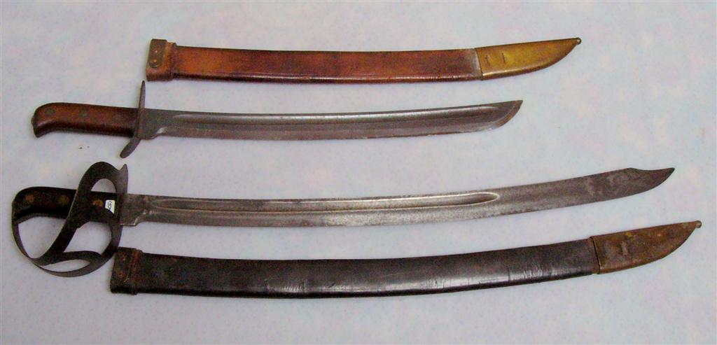 It was quite common for local recruits/mercenaries fighting for the colonial Dutch military to modify their cutlasses to suit their personal taste for more efficient use with their 'brand' of martial arts. This went on long before the outbreak of hostilities known as WWII. Among the Soenda, for instance, the length and weight would be adjusted for use in Ibing Toelak Bala as a golok or golok pandjang. The closed guard would also have been more of a hindrance. Best, |